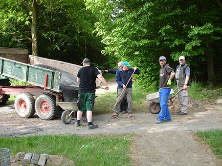 Gesagt, getan! Frohen Mutes und voller Tatendrang gingen die Michelsberger ans Werk. Wie die fleißigen Bienen wusste jeder, was er zu tun hatte und packte mit an. Es wurde gepflastert, gesäubert, gegraben, gebaggert und noch vieles mehr.